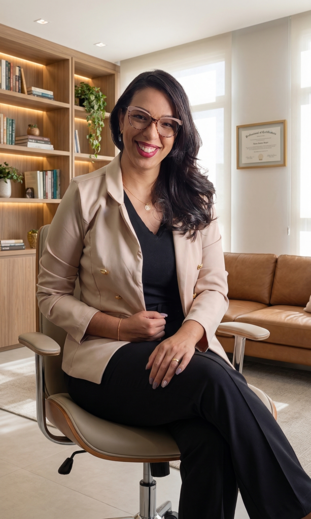 Psicóloga e hipnoterapeuta clínica com base na neurociência. Meu trabalho é ajudar você a entender o que sente e, principalmente, mudar a forma como sua mente responde a isso.